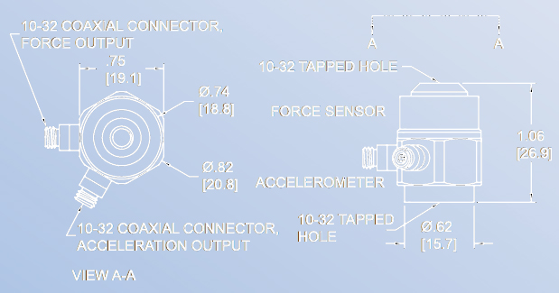 N/A 100 mV/lb and 100 mv/g sensitivity 10-32 Stud Mount IEPE Simultaneously measures force and acceleration Single Axis Two 10-32 Radial Connector |